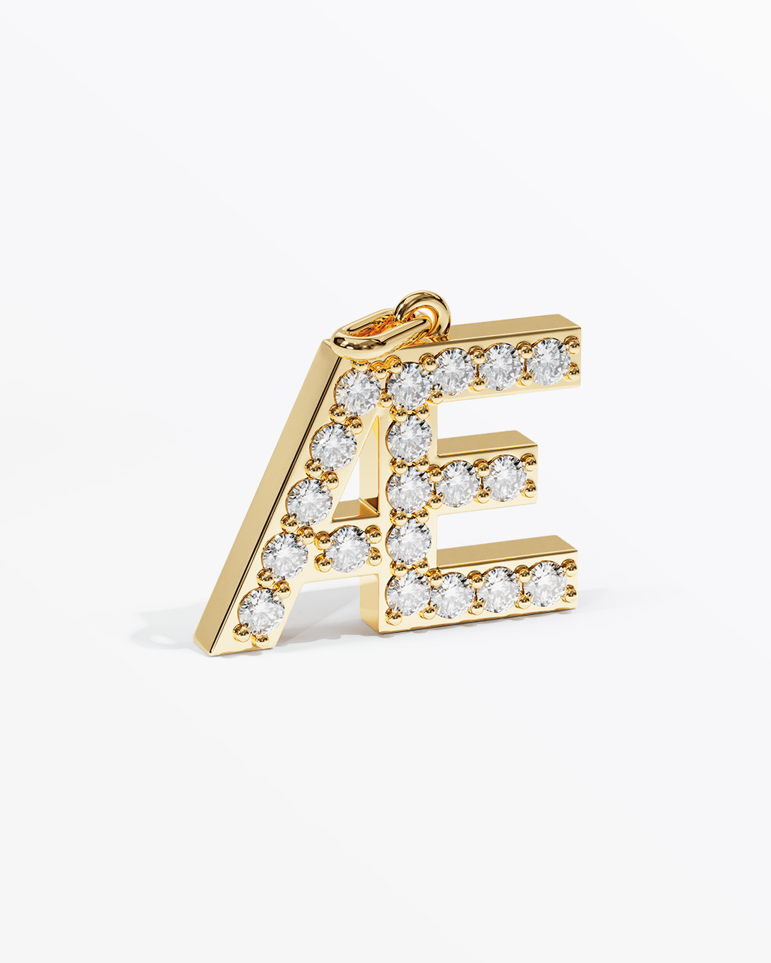 Bogstav Æ med 19 sten. Alle sten kan designes individuelt. Stenstørrelse er 2 mm. Højde er 15 mm. Dybde er 3,5 mm.