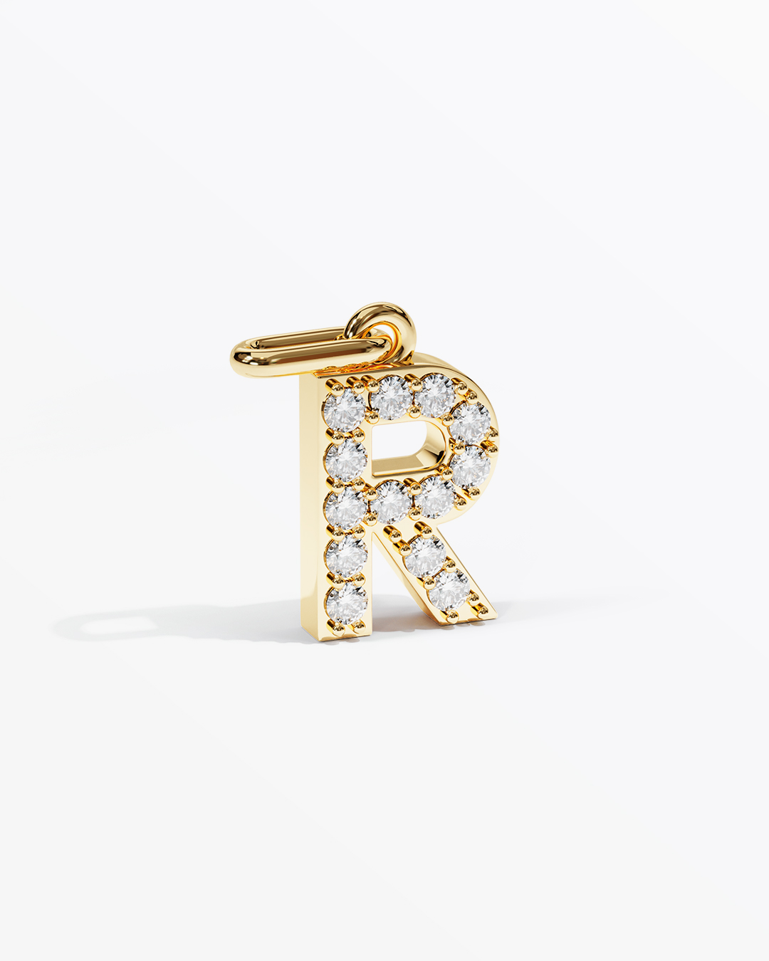 Bogstav R med 13 sten. Alle sten kan designes individuelt. Stenstørrelse er 1,5 mm. Højde er 10 mm. Dybde er 2,6 mm.