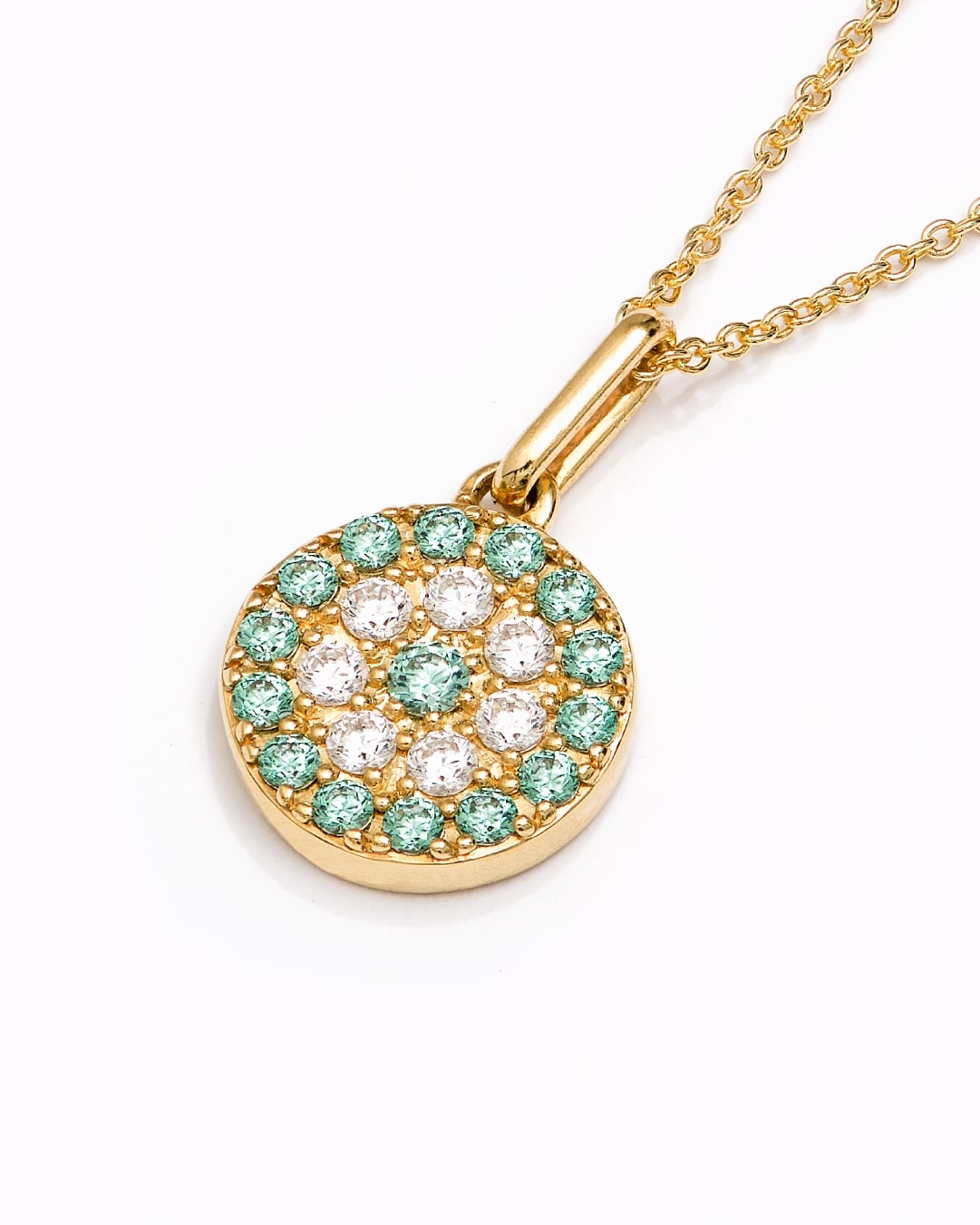 Dette vedhæng med tre cirkler af sten giver dig mulighed for at tilføje et unikt touch. Med 14 sten i yderste cirkel, 7 sten i midtercirklen og en enkelt sten i midten kan hver cirkel designes, så det passer perfekt til din smag. Med en diameter på 11 mm, og en dybde på 2 mm er dette vedhæng både raffineret og personligt.