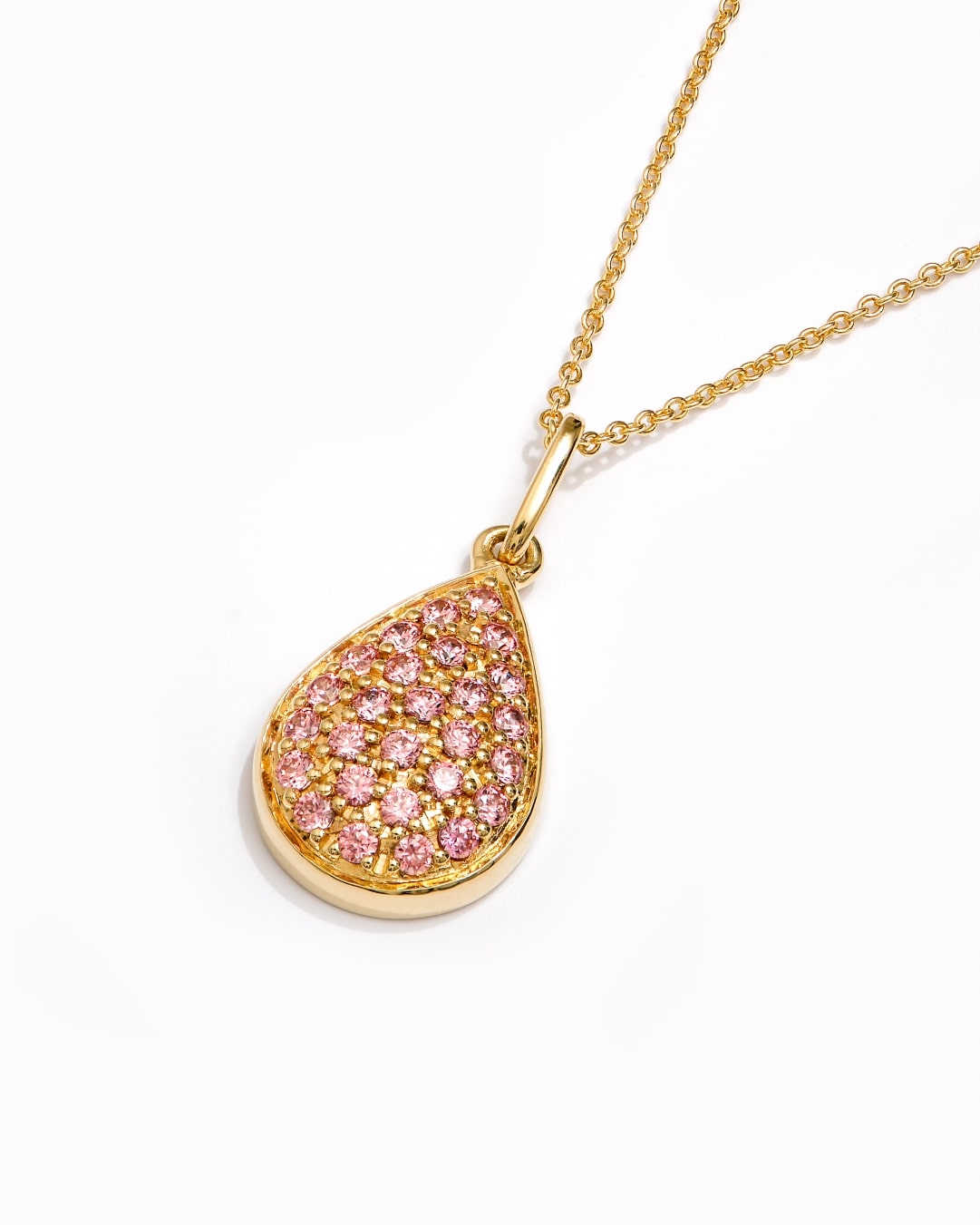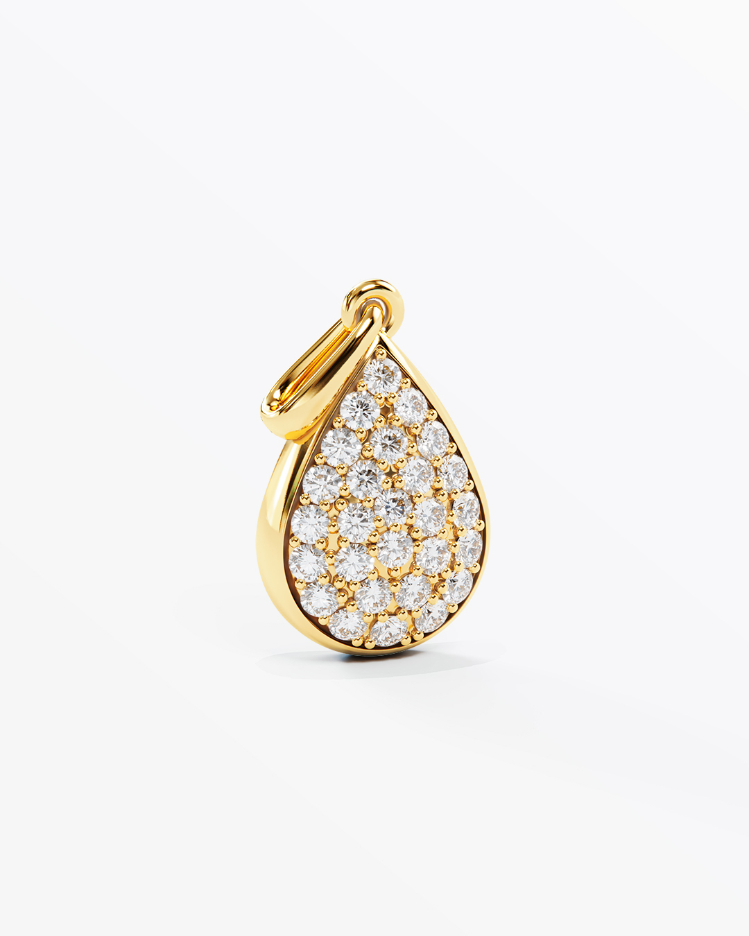 Dråbeformet og stilfuldt – dette vedhæng har tre rækker af sten. Den yderste række består af 16 sten, midterrækken af 9 sten, og den inderste af 2 sten. Alle rækker kan designes individuelt, så du kan skabe et smykke, der er unikt for dig. Vedhænget har en højde på 20 mm, bredde på 12 mm, og en dybde på 3 mm.