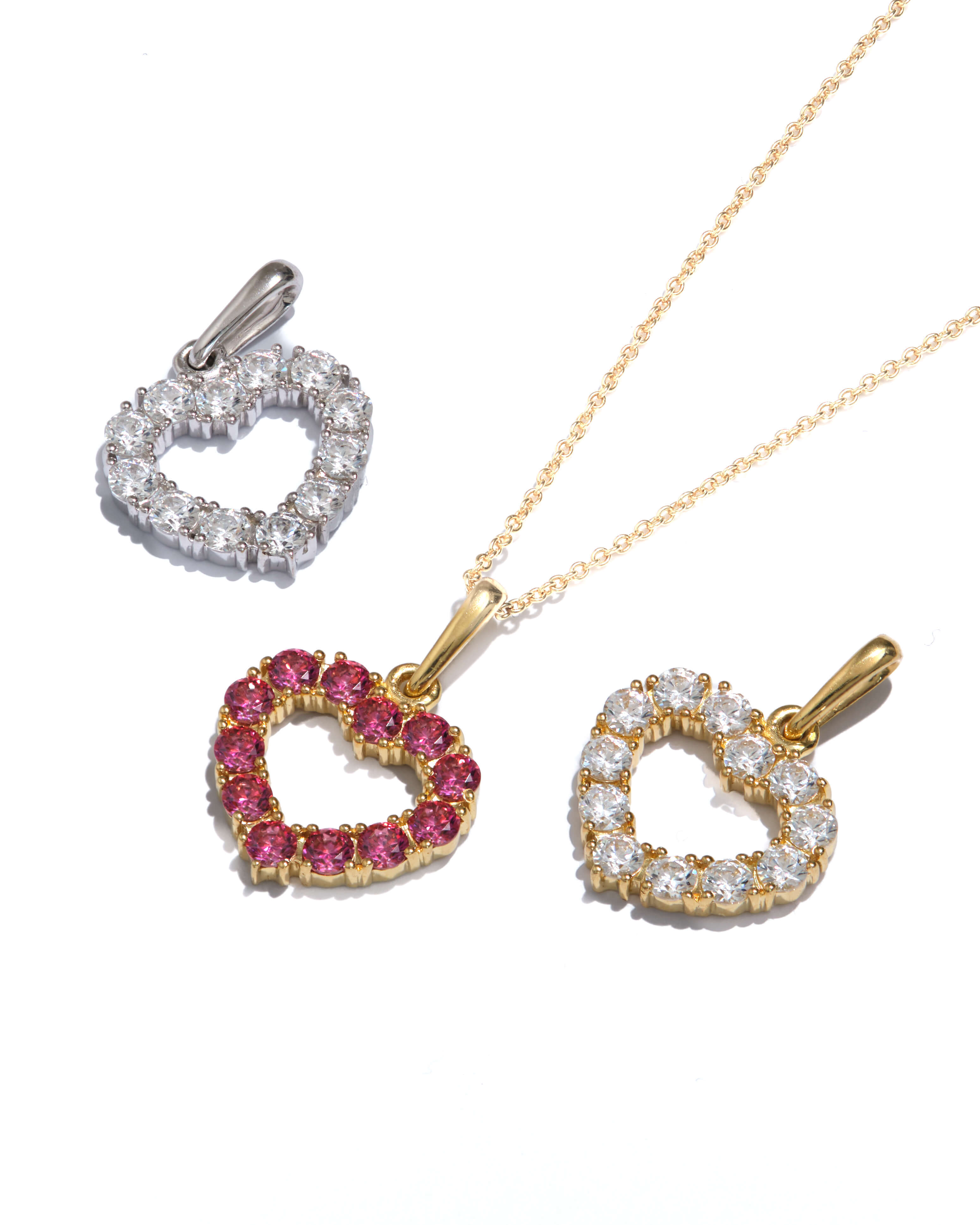 Et elegant vedhæng, hvor 12 sten danner formen af et hjerte. Hver sten har en størrelse på 2,5 mm og er fastholdt af detaljerede krabber, der er med til at forme vedhængets udtryk. Et tidløst smykke, der udstråler kærlighed og skønhed. Vedhænget har en højde på 12 mm, bredde på 14 mm, og en dybde på 2 mm. Det hjerteformet vedhæng kan løfte din personlige smykkesamling eller gives som en særlig gave.