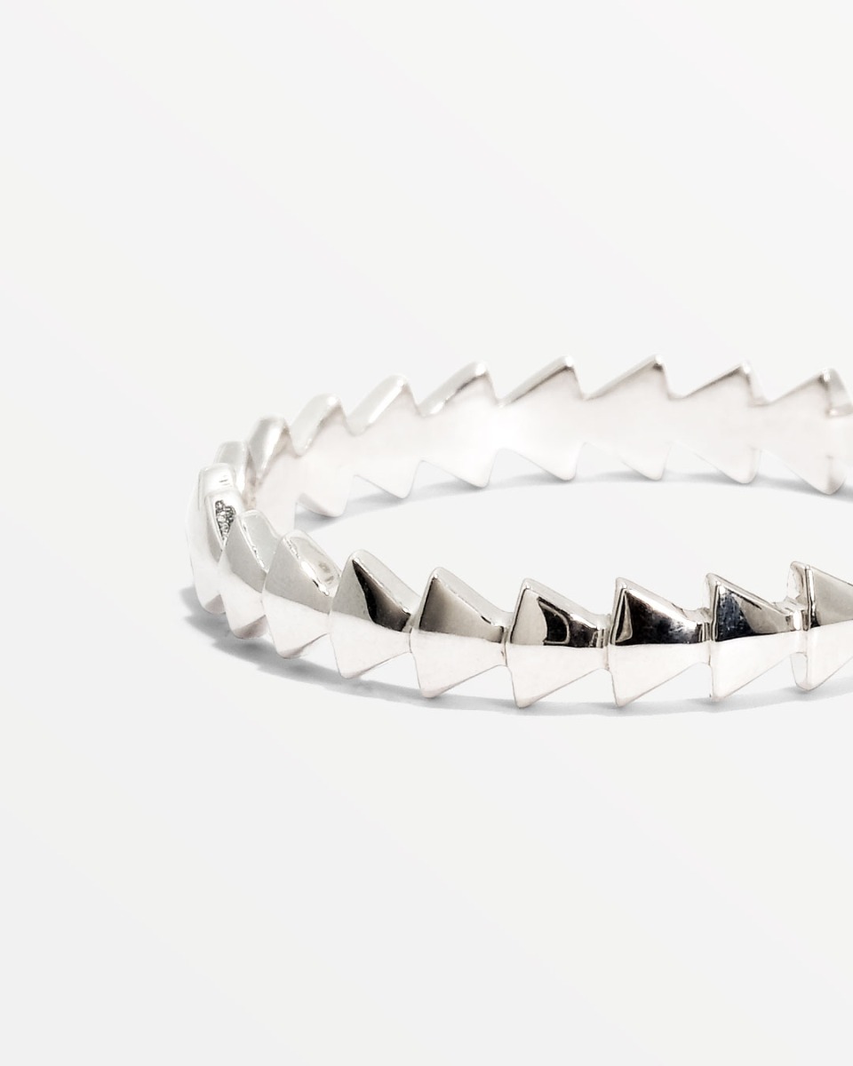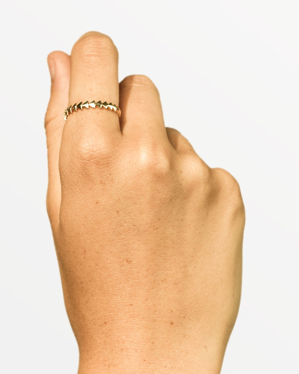 Ring som er dannet af små trekanter, som som er sat sammen. Denne ring er uden sten.
