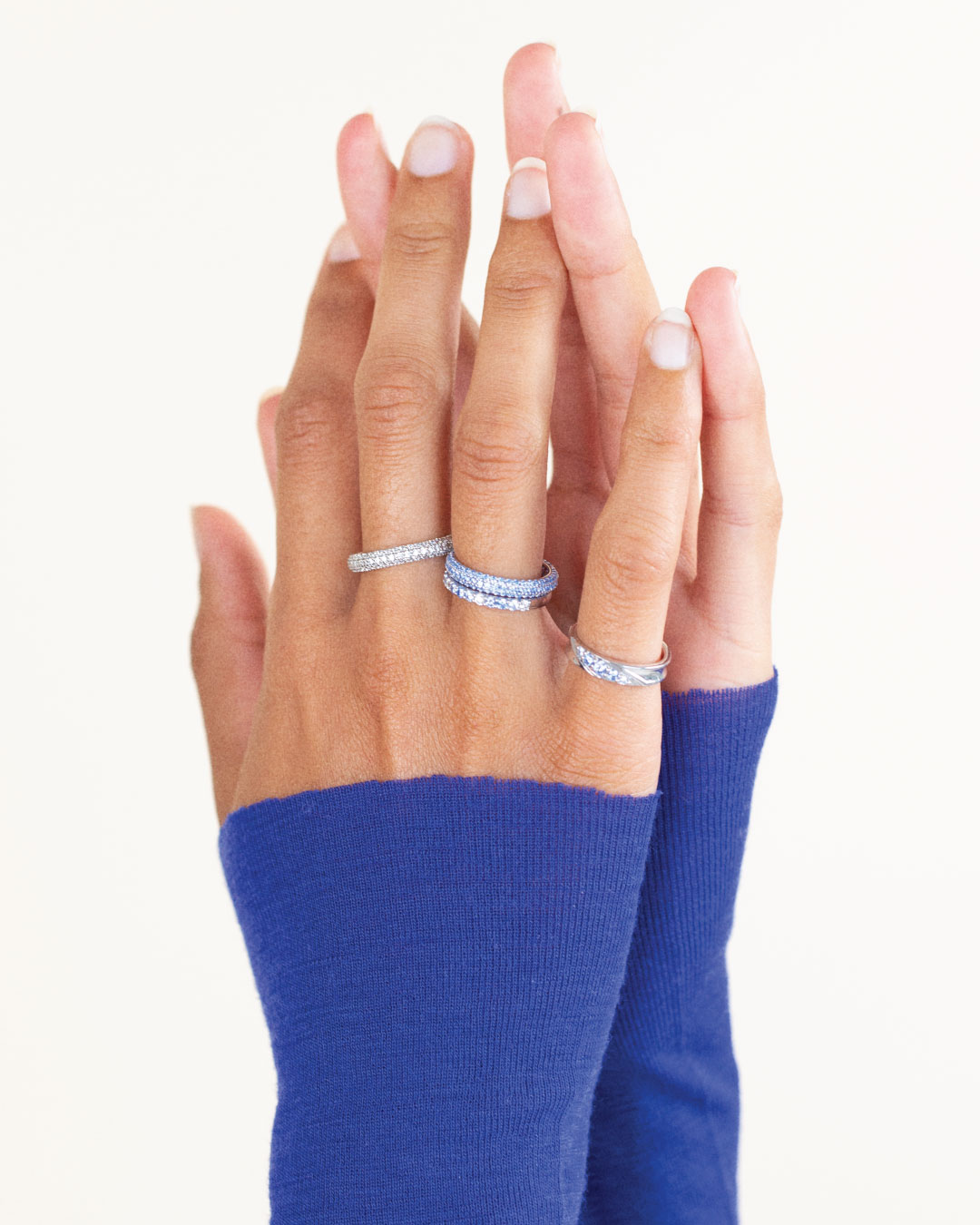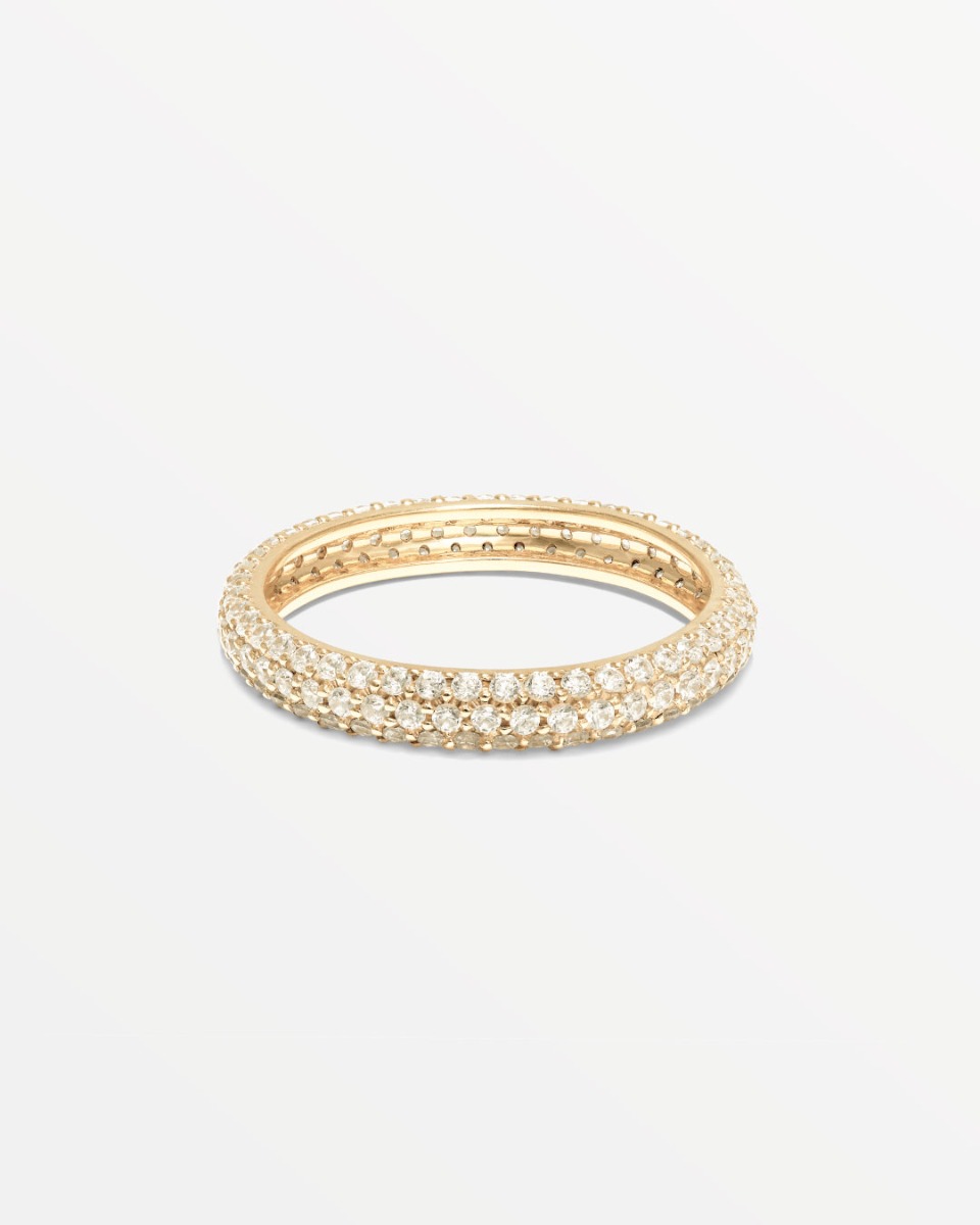 Pavé-ring med 135 sten (afhængig af ringstørrelse) sat i 3 rækker, som går hele vejen rundt.