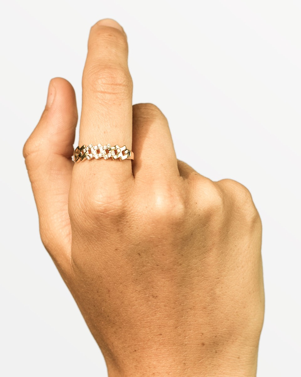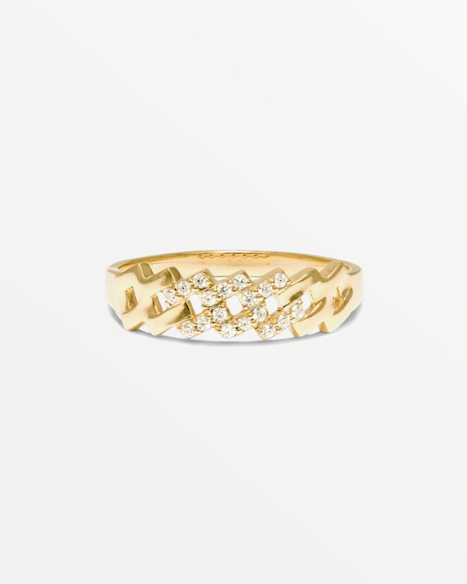 Cuban link inspireret ring med 18 sten.